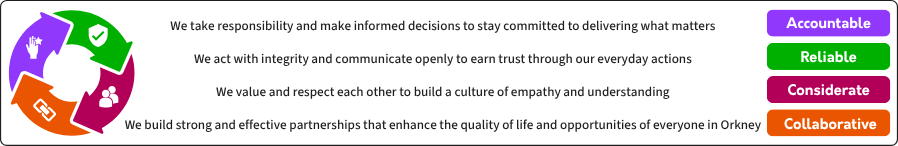 Our Values are part of Our People Our Plan – Orkney Islands Council's commitment to our staff and our communities.